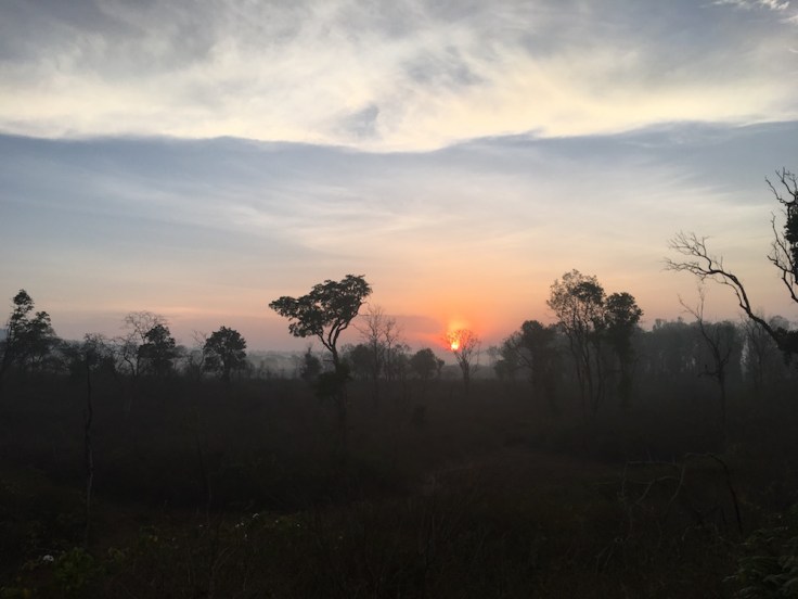 The jungle was surprisingly dry. All trees were barren, devoid of a single leaf. All waterholes were dry. Though it was mesmerizing to see the sunrise from inside the forest and see the thin morning mist lift as the sun rose in the sky, the sheer barrenness of the forest left us a bit disappointed.