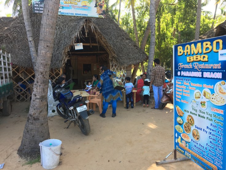 We had lunch just outside the beach in this hut restaurant (every restaurant is a french restaurant in Pondicherry). I had a yummy crab meal here.