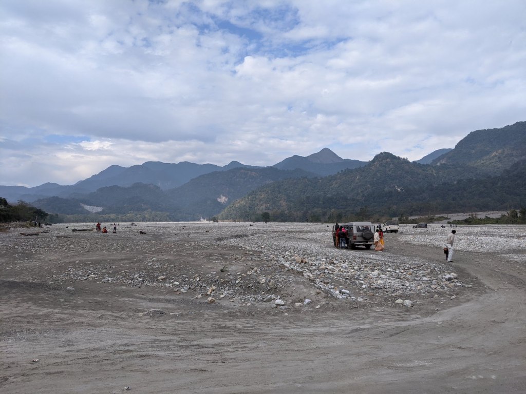 We went through the forest to the banks of Jayanti river. The river bed was completely dry. Cars were meandering on the river bed. It fills up during Monsoon, the locals said. There are scores of home stays available here. We had lunch near the Jayanti river bed.