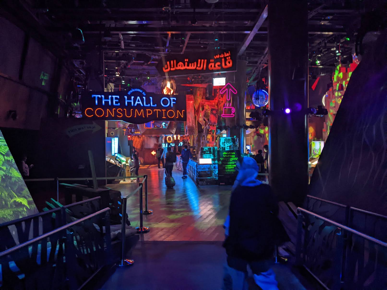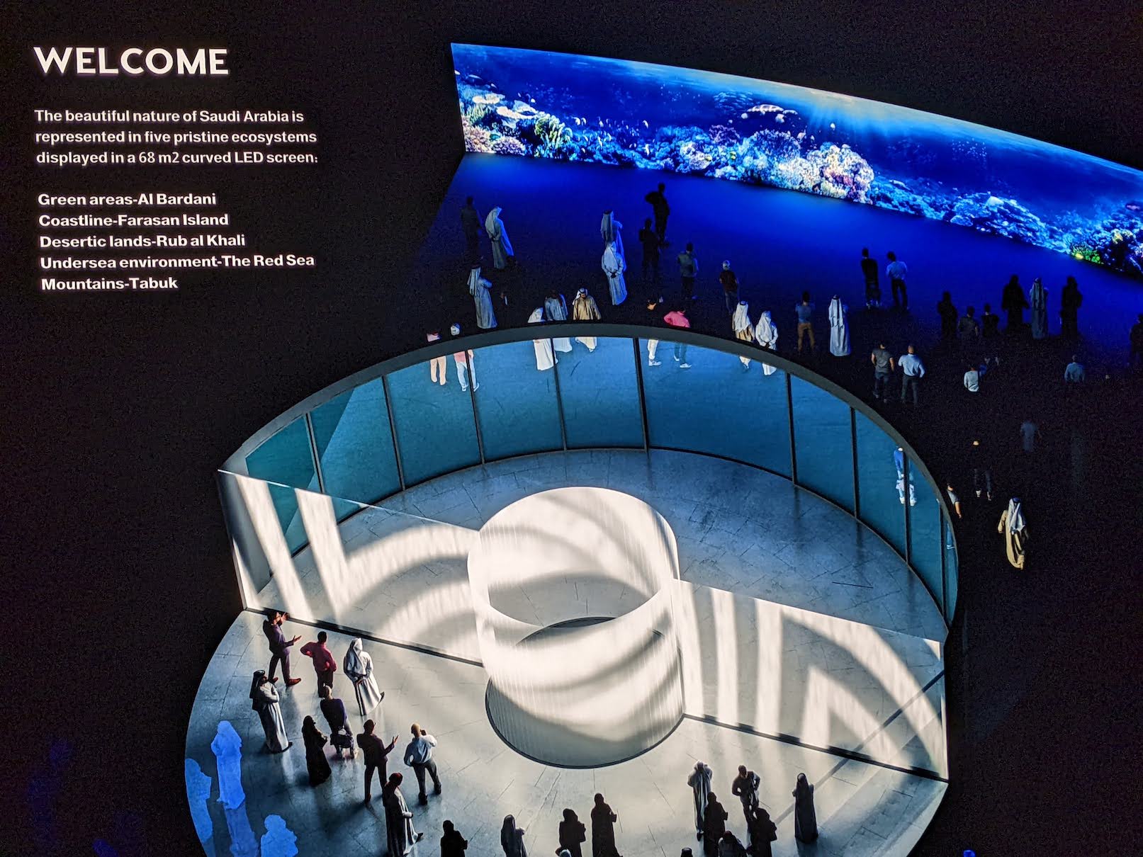The whole experience was contained in a circular room, with a screen running around the circumference. The audio visual which played was quite immersive. A short but very impactful message regarding sustainability, togetherness.