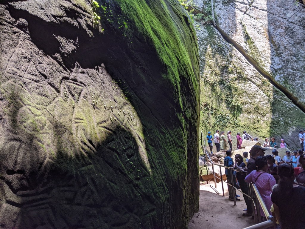 Edakkal caves are one few of sites in India where you can find Petroglyphs. Petroglyphs are basically rock art created by pre-historic men/women by incising, picking or carving on rocks. The Petroglyphs in Edakkal caves are estimated to be at least 6,000 years old.