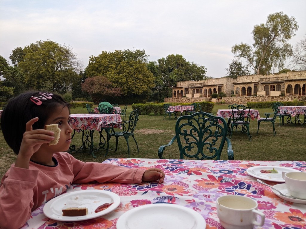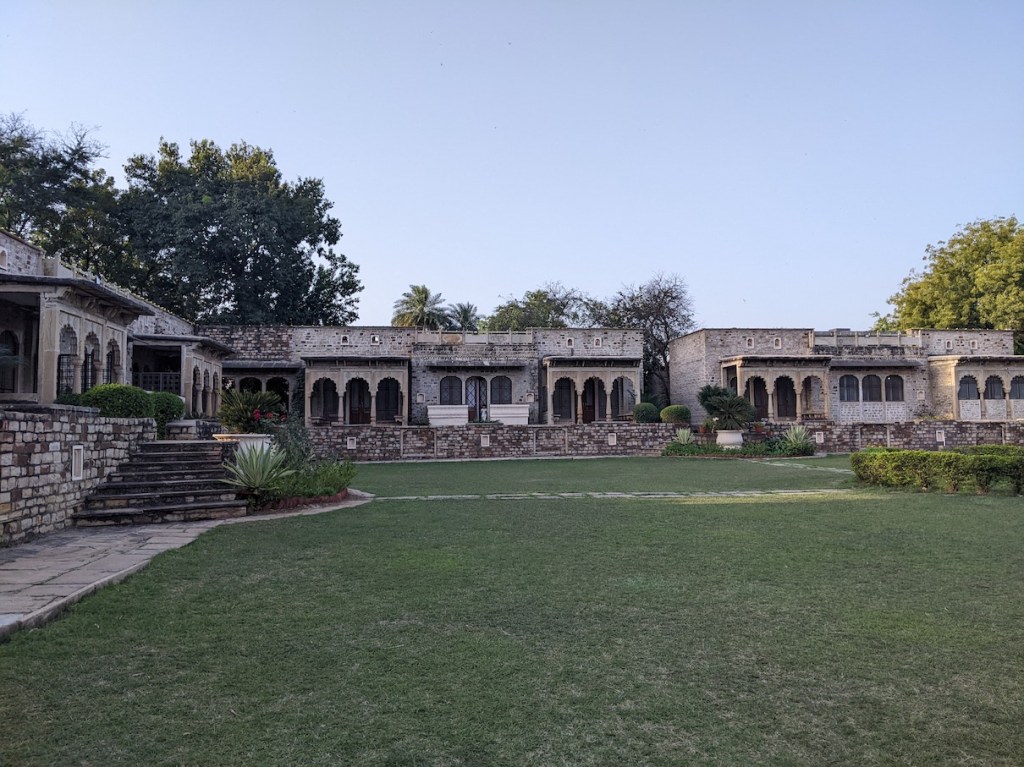 Our booking was at Neemrana’s Deobagh. We took the auto to the hotel. When we reached, it was still dark, and honestly it looked like a Bhoot Banglow (A ghost house)…the kind of abandoned old haunted houses which shows in movies.