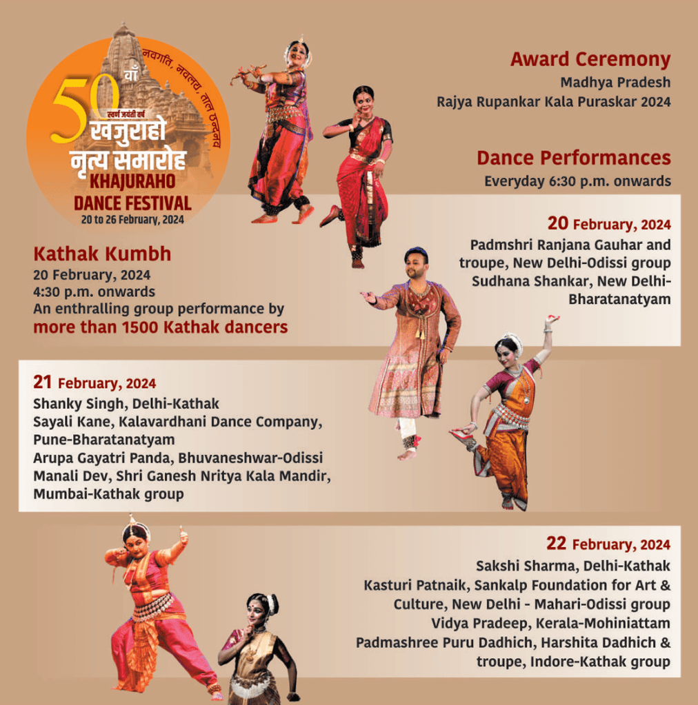 Khajuraho is not easy to reach from South India. There are no direct trains or flights. So going to Khajuraho has been an elusive dream since long. This time when we made up our minds to go, the main question we tried to answer was which days of the festival do we attend? This year the festival was from 20th to 26th February, 2024.