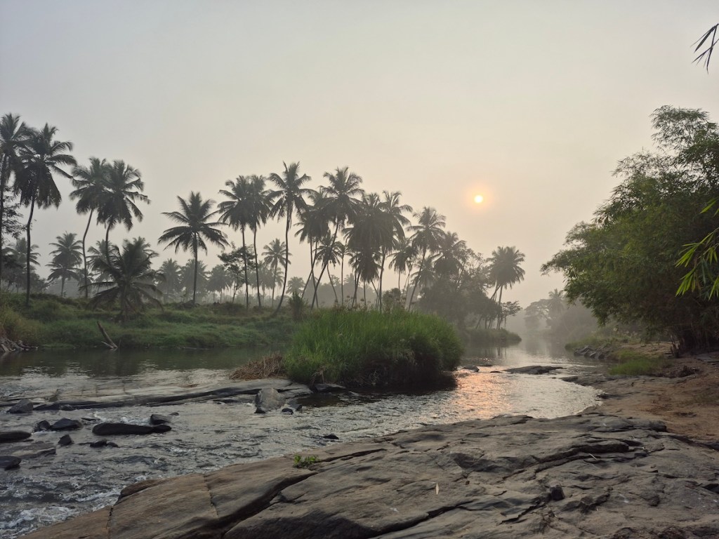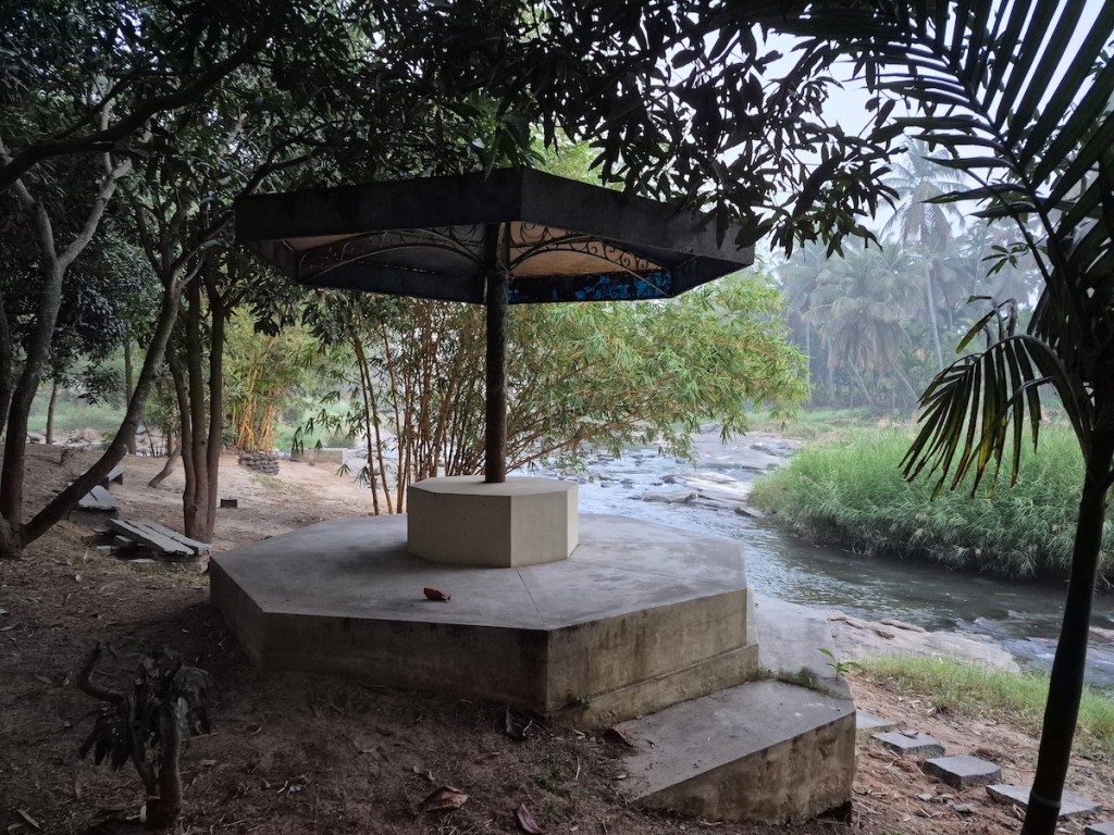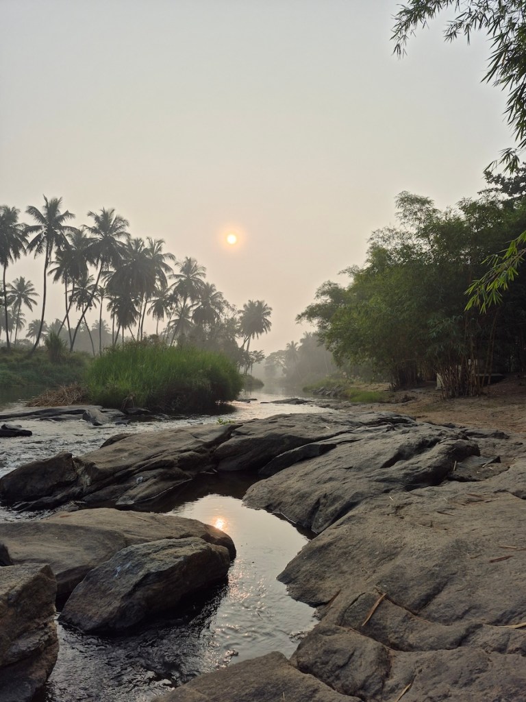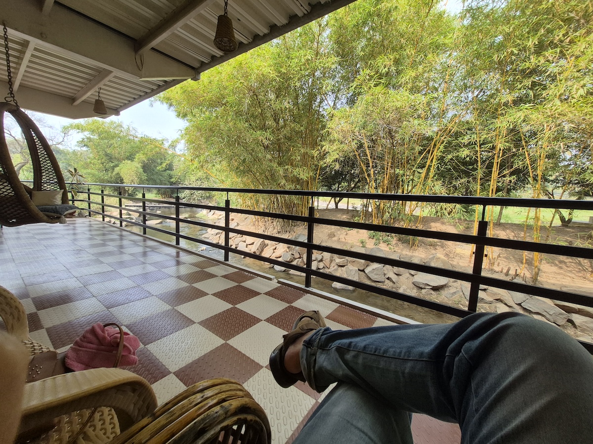 Yoga Dhaama is primarily known as a yoga and wellness retreat, but they also have an Airbnb setup — and what caught my attention was its location right beside a small tributary of the Kaveri River. It was a complete last-minute decision. Options were few, the year was ending, and this one looked promising enough on Airbnb. I booked it without overthinking.