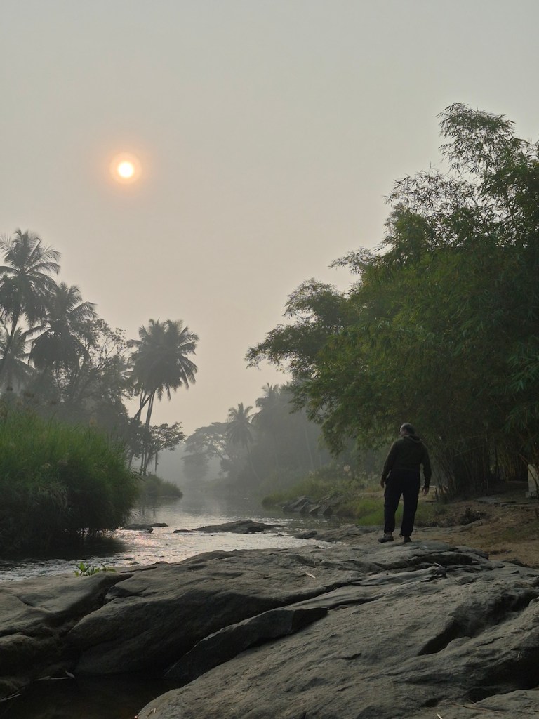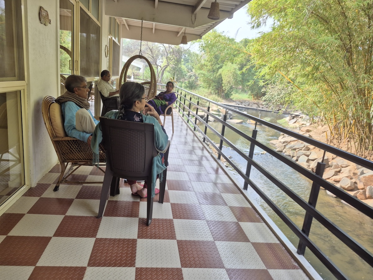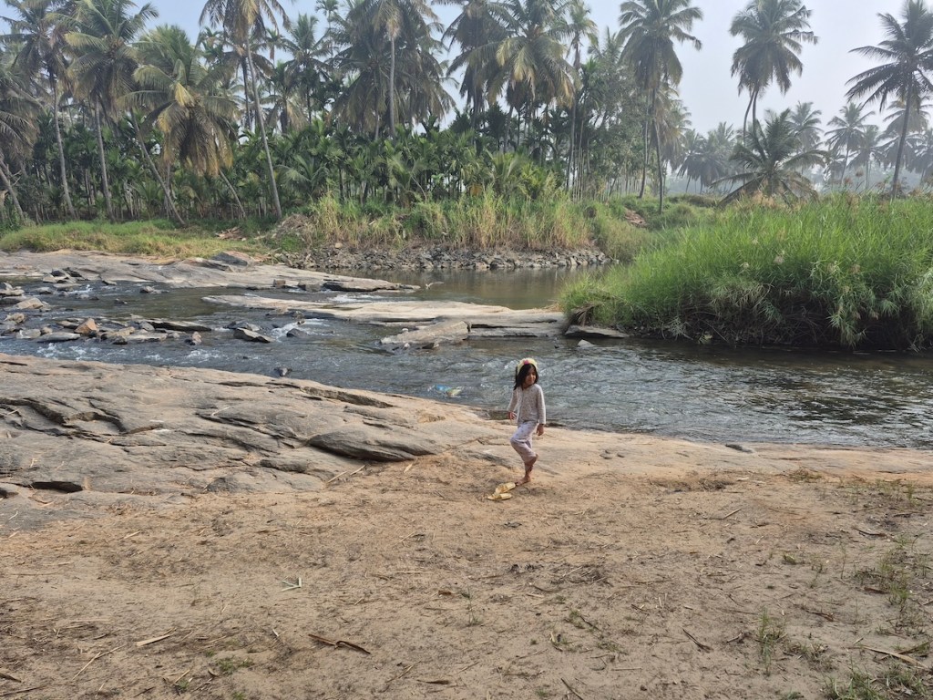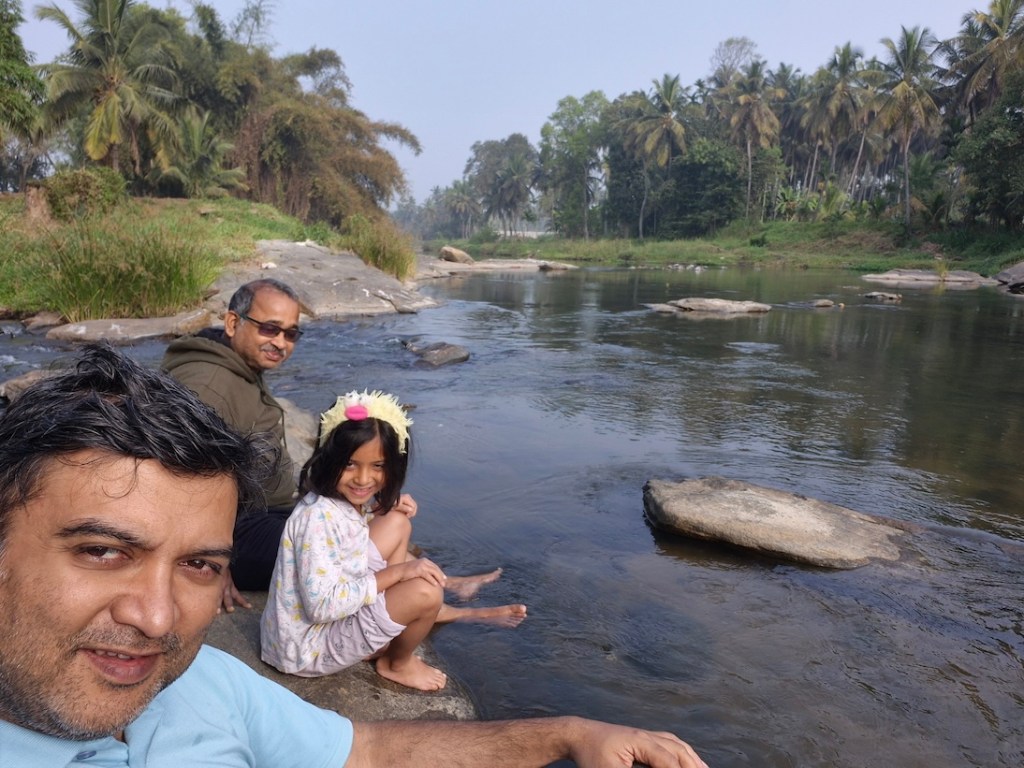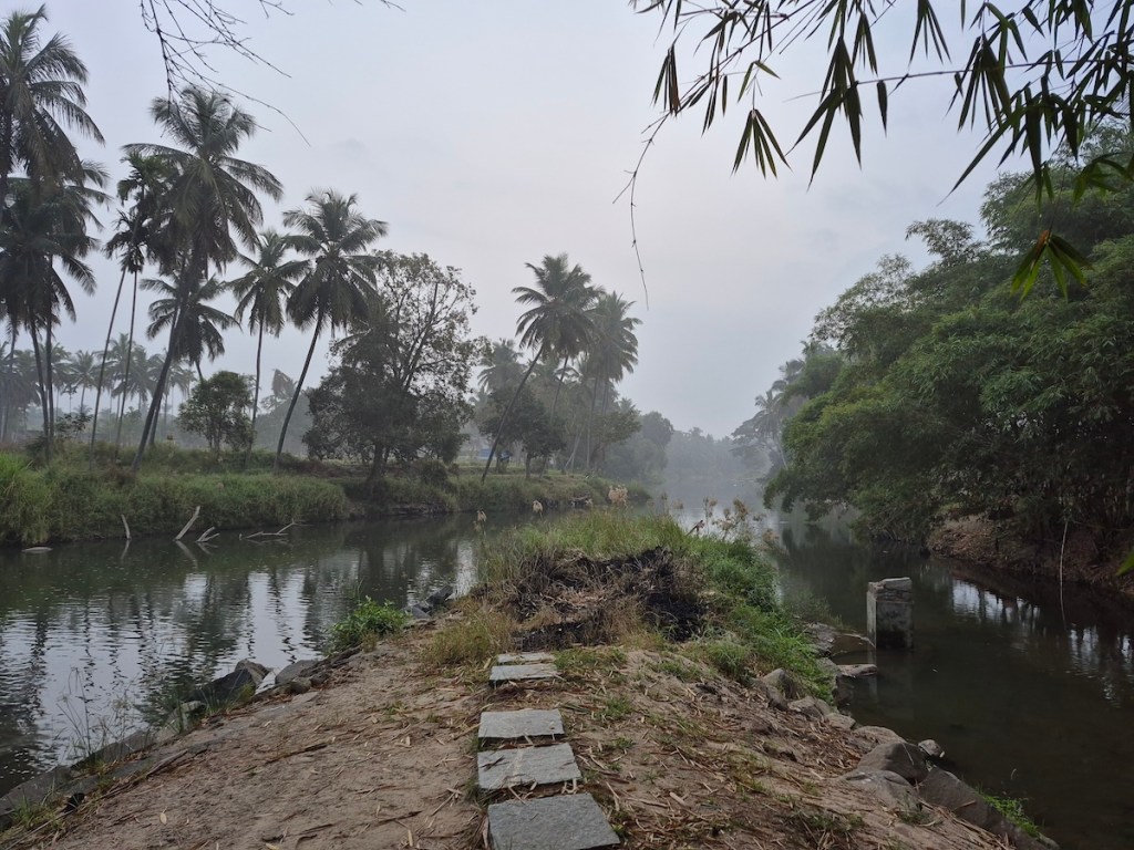 Yoga Dhaama is primarily known as a yoga and wellness retreat, but they also have an Airbnb setup — and what caught my attention was its location right beside a small tributary of the Kaveri River. It was a complete last-minute decision. Options were few, the year was ending, and this one looked promising enough on Airbnb. I booked it without overthinking.