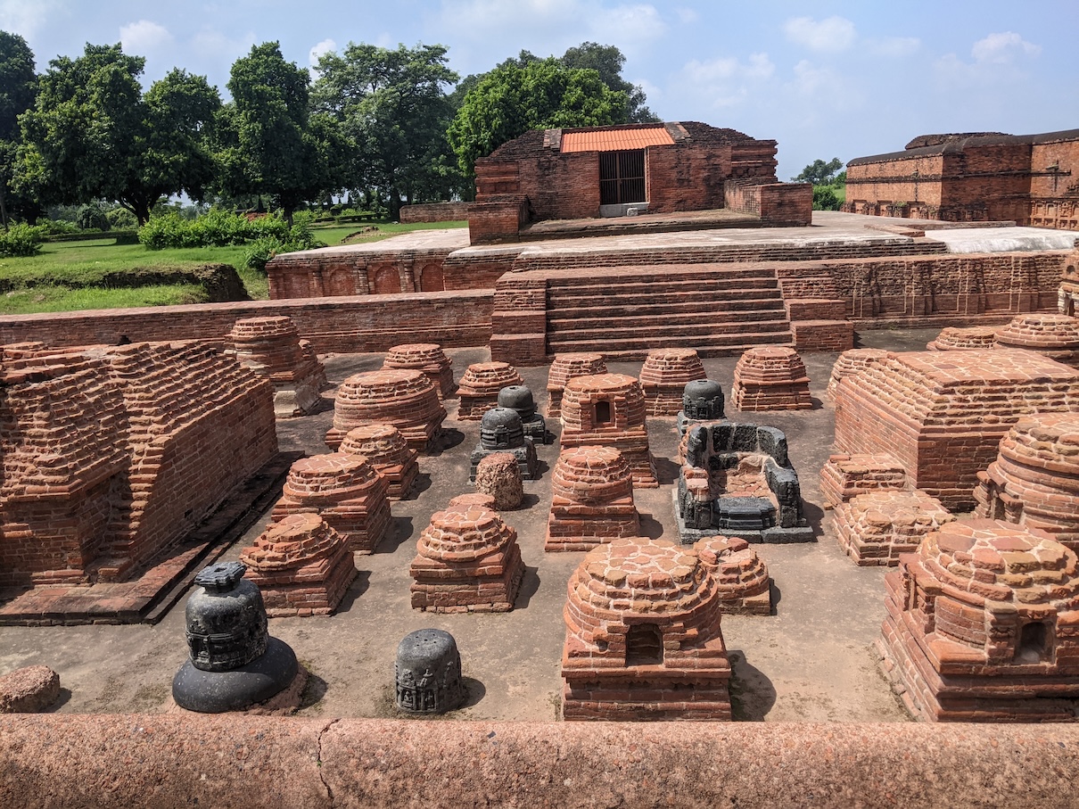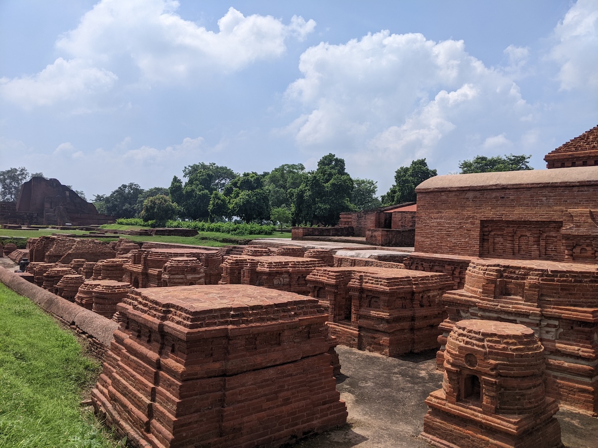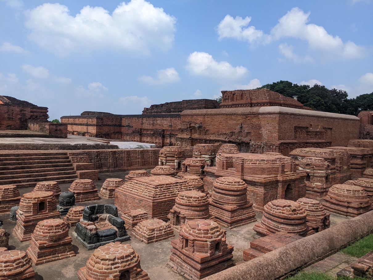 Red brick structures stretched out in long, orderly rows—monasteries, lecture halls, stupas, meditation spaces—all broken, and incomplete, yet still imposing. What we see today, historians say, is only a fraction of the original campus.