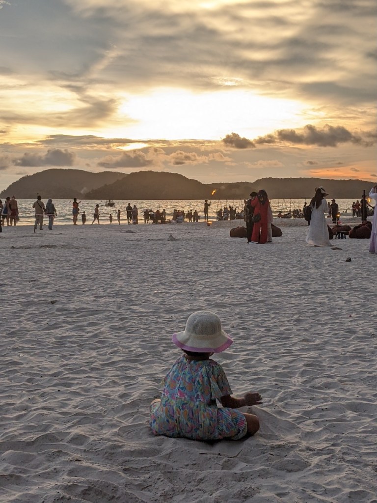 The sunset from the beach was beautiful. My daughter happily went back to doing what she enjoys most – playing with sand.