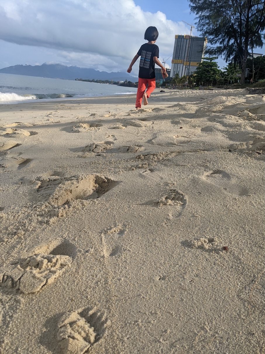 The resort has its own stretch of beach, which feels almost like a private beach because it is much quieter compared to Pantai Cenang. My daughter immediately ran towards the sand and started playing there.